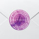 Dica: Se necessário, adicione espaços entre letras e/ou espaço duplo entre palavras para alcançar esta "aparência". Este vibrante design de aquarela roxa apresenta seu monograma, nome e endereço em uma etiqueta de endereço de volta redonda.