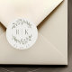 Etiquetas de monograma de casamento botânico personalizadas, com uma faixa elegante com iniciais de casal e data de casamento em fundo branco neutro. Perfeito para o casamento, guarde as datas, os envelopes, as embalagens de casamento e muito mais.