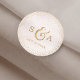 Glamor faux glitter rosa gold lettering calliografia monograma design e dourado confetti em fundo pastel blush watercolor, bonito shimmer falso efeito metálico rosa de ouro-ouro, moderno, chic, elegante e elegante, perfeito para casamento vintage ou casamento de primavera. Personalize seu próprio adesivo monograma e adicione um toque pessoal ao seu casamento! Veja todas as peças correspondentes nesta coleção de caligrafia de rosa dourada esfregada abaixo.