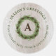 Este adesivo de Natal moderno e fofo apresenta uma grinalda de ramo de pinheiro verde em torno da inicial do seu monograma. Personalize com sua própria mensagem de Natal e os nomes da família para usar em selos de envelope ou etiquetas de embrulho de presente. Use as ferramentas de design para personalizar as fontes e cores ou faça o upload de suas próprias fotos.
