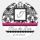 Design de monograma quadrado elegante Art Nouveau damask com uma cor-de-rosa magenta, faixa fuchsia de Búlgaro Lumini (c). Fácil de personalizar com suas iniciais e seu próprio texto como um anúncio, obrigado você, chás de panela, 16 festas de aniversário, aniversário, chás noivados, ou praticamente qualquer evento que você queira!
