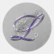 Texto monograma do script de aspecto roxo e prateado do rico com aspecto bisel L com diamantes prateados FAUX e brilho em fundo damasco prateado. POR FAVOR, OBSERVE: TODOS OS ELEMENTOS QUE VOCÊ VÊ SÃO GRÁFICOS, ELES NÃO SÃO VERDADEIRAMENTE GLITTER E GEMS. Se você quiser esta design em outro produto, por favor, entre em contato comigo através da minha loja.