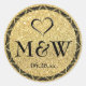 Dourada lisa e vinheta de casamento do monograma preto. Coração negro aberto e bonito com iniciais monográficas de noiva e noivo, mais a data do seu casamento. Obrigado personalizado que você cola ou sela ou adesivos luxuosos. Tipografia elegante e borda chic em preto e ouro que tem pistas do estilo Art Deco. Ouros brilhantes brilham, os brilhos criam uma vibração de luxo. Perfeito para um casamento de Art Deco, casamento Gatsby, casamento de Abadia Centro, casamento 1920, antiguidade ou casamento vintage.