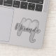 Monograma personalizado e Name Custom-Cut Sticker com nome personalizado no estilo de fonte do script moderno da cinza e monograma no estilo de fonte do script moderno da cinza clara como fundo.
