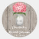 Bonito fúria rosa-rosa hydrangea mason jar chá de panela partidário a favor de etiquetas e obrigado que você cola com cerca de madeira e fundo da cabeça de prego. Isto é perfeito para uma festa rústica de chic, country, fazenda, festa de jardim ou chá de panela de barnyard. O jarro de mason pode ser personalizado com as iniciais da noiva e do noivo. Projetado por Chrissy H. Studios, LLC. Todos os direitos reservados.