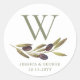 Um conjunto de adesivos de casamento modernos, com um galho de oliveira mediterrânico de estilo pintado. Ele mostra um lugar para um monograma roxo e data de casamento. Todos os elementos individuais desses adesivos exclusivos são personalizáveis, simplesmente use a função de personalização. Aproveite criar e fazer-o seu!