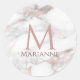 Modelo de Adesivo Redondo Clássico Monograma Personalizado Mármore Dourado Rosa Moderno Elegante.