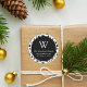 Este adesivo de endereço de retorno moderno apresenta um círculo preto sobre um padrão de pinheiros verdes e pretos sobre um fundo branco. Personalize o design com o seu nome inicial e familiar monograma na fonte de serif branca, com o seu endereço abaixo em sans serif.