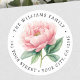 Lindas etiquetas de endereço de retorno que incluem uma pintura de um pedreiro cor-de-rosa com folhas verdes e seu endereço de retorno em uma fonte serif elegante.