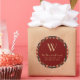 Este elegante adesivo de endereço de retorno apresenta um círculo de burgundy sobre um padrão de fundo de formas vermelho, verde e deco de arte dourada. Personalize o design com o seu nome inicial e familiar monograma na tipografia do tipo deco dourado, com o seu endereço abaixo na fonte sans serif.