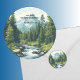 Add a special accent to your envelope or packaging with this mountain landscape watercolor in gteens on a round sticker. Bible verse is created in editable text that you can change. Your choice of sizes and and matte or gloss.