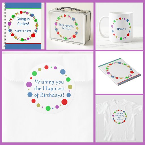 A design é de órbita colorida com as cores vermelha, verde, roxa, amarela e azul, juntamente com dois (2) campos personalizáveis de tipografia, que atualmente leem "Obrigado!" e "Com amor, nome da assinatura" para desejar e/ou outra personalização. Para solicitações ou perguntas especiais, entre em contato com o artista em wafadahdalcreates@gmail.com. © Wafa Y. Dahdal - Todos os direitos reservados. WD Art