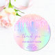 Um fundo iridescente de tendência com cores pastel unicórnio e arco-íris em cor rosa, roxo, rosa, verde da casa da moeda. Decorado com pingos de brilho falso em ouro rosa, rosa e roxo. Para maquiadores, designers de cabelo, cabelos e salões de beleza. Letras cor púrpura. Personalize e adicione seu nome e informações de contato. O texto: Obrigado é escrito com um script de estilo tendencioso com letras maiúsculas e minúsculas. Perfeito para favores, ofertas, promoção/publicidade de sua empresa.