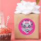 Esta arte clássica de personagem da Mulher Maravilha é transformada em um gráfico de rocha anos 80 inspirado em um gráfico, com estrelas e raio em cores vibrantes, cor-de-rosa e marinho profundo.