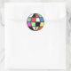Design gráfico do globo mundial com quadrados coloridos dentro a traço preto