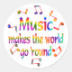 Os amantes da música vão desfrutar desta design colorida com as notas de música e as palavras coloridas do arco-íris Música Faz o Mundo Seguir.
