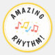 Boas recompensas divertidas para estudantes de música e professores com notas de música e a frase: "ritmo incrível!"