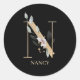 Florial da letra N monograma. A letra N, de textura castanha ouro, acentuada com folhas compostas de cor aquosa verde, flores e pó de ouro. Personalizado com o nome na fonte correspondente.