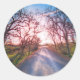 Avançando rapidamente para a luz numa estrada rural. Árvores desfocadas da aceleração.