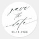 Casamento de caligrafia na moda a preto e branco salve o adesivo de data. Para uma personalização mais avançada deste design, clique no BOTÃO FERRAMENTA DESIGN AZUL. .