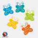 9 Niedliche wasserfeste konturgeschnittene Vinylaufkleber für Kinder. Schmetterlinge in verschiedenen blau, grün und gelb Farbtönen.