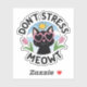 Este adesivo adorável apresenta um gato preto gelado vestindo óculos de sol em forma de coração, cercado por céus ensolarados, nuvens fofinhas e tulipas florescentes. Com a mensagem brincalhona "Não Stress Meowt", é um belo lembrete para respirar fundo, abraçar o seu felino interior, e deixar de se preocupar. Perfeito para amantes de gatos, entusiastas do alivio de estresse, ou qualquer pessoa que precise de uma dose de positividade. Coloque-o no seu laptop, garrafa d'água, planejador, ou em qualquer lugar que você precise de um lembrete para desfazer e aproveitar as coisas simples. Este vinil resistente é feito para resistir às aventuras do dia a dia, tal como a sua atitude legal.