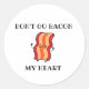 "Não faça bacon no meu coração" é um trocadilho brincalhão que combina "partir o meu coração" com "bacon". É uma peça temática de comida sobre palavras que é popular em itens de novidade e muitas vezes usada como uma expressão fofa entre pessoas que compartilham tanto o amor pelo bacon quanto o apreço pelos trocadilhos. A frase ganhou popularidade nos últimos anos como parte da tendência mais ampla de humor relacionado à comida e mercadoria com o bacon.