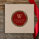 Este elegante adesivo de endereço de retorno apresenta um círculo vermelho burgundy sobre um padrão de quatrefoil em burgundy, verde e ouro. Personalize o design com seu nome inicial e familiar monograma na fonte dourada serif, com seu endereço abaixo em sans serif.