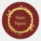 Adesivo Redondo Clássico de Natal Vegano Vermelho e Dourado Bilingue. (Etiqueta de Alimento)