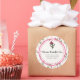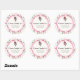 Adesivos comerciais com seus detalhes comerciais personalizados dentro um círculo branco de casca de ovo com uma borda rosada pontilhada. O nome da empresa é escrito em negrito. O pano de fundo é um padrão de flores silvestres cor-de-rosa desenhadas à mão, com caules verdes longos e folhas num pano de fundo branco de casca-de-ovo. Círculos cor-de-rosa e galhos também decoram o design. Design floral branco e bonito.