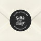 Apresentando nosso moderno negro Salve a data do lançamento Clássico redondo, uma escolha elegante e na moda para seu dia especial. Apresentando tipografia contemporânea e uma design minimalista, isso adiciona um toque de sofisticação à sua papelaria de casamento. Personalize com seus nomes e data para criar uma lembrança memorável para os convidados. Seja usado em convites ou como sotaques decorativos, este adesivo define o tom para uma celebração moderna e elegante, capturando a essência de sua história de amor com cada detalhe.