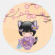 Adesivo Neko Kokeshi Doll Cat Orelha Garota Geisha Amarelo