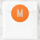 adesivo redondo clássico com um círculo de cor sólida cor laranja neon e uma fonte branca. Design simples e moderna por Alma personalizava-o com o seu monograma agora. _______________— Laranja, a cor do sol, é muitas vezes associada ao sinal de Leo. Você pode considerar isso ao escolher um presente.