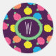 Rosas estilizados em néon brilhante cor-de-rosa, azul, amarelo e coral com folhas verdes neonatais são girados sobre um fundo roxo profundo para criar um padrão floral divertido. Personalize o monograma deste adesivo para torná-lo exclusivo.