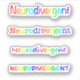 A palavra "NEURODIVERGENT" escrita quatro vezes em cores do arco-íris e diferentes fontes. Esta design de etiqueta de tipografia é destinada a promover a neurodiversidade. Abraçar a neurodiversidade e as mentes amorosas de todos os tipos com estes adesivos coloridos da neurodiversidade no arco-íris!