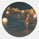 A surreal nocturnal scene where glowing orbs float across a calm alien sea under a star-filled sky. A solitary human figure stands in shallow water, surrounded by silent movement beneath the surface, blurring the line between curiosity and unease. This artwork evokes mystery, introspection, and quiet tension, making it a powerful statement piece for modern interiors, sci-fi inspired spaces, and contemporary art collections.