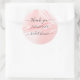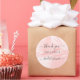 Para uma noiva chuva de presente elegante e moderna. Seda cor-de-rosa, impressão em cetim como fundo. Personalize e adicione um nome. Com o texto: Obrigado e Noiva Chuva de presente.