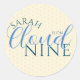 Este design apresenta adesivo de Chuva de Presentes de Noiva com nuvem moderna estilo 9 com tipografia de letra moderna "A noiva está na nuvem nove" e padrão de pontos em azul e branco. Todos os produtos são facilmente editáveis. Se precisar de ajuda com a personalização ou precisar de mais produtos desta coleção, por favor me envie uma mensagem via Zazzle.