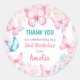 Obrigado de aniversário da Floral Garota que você coloca cheio de borboletas. Este adesivo captura a essência de um dia ensolarado de verão em lindos tons felizes de rosa, roxo, verde claro e azul turquesa. Perfeito para qualquer festa de aniversário ou de jardim de verão. Personalize facilmente o texto. - Kate Eden Art