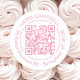 Código QR moderno, cor-de-rosa, redondo, nome comercial e adesivo de endereço com texto personalizado em uma fonte sans serif moderna, um quadro de círculo na moda e espaço para seu código QR. Altere as cores dos elementos de design de acordo com sua vontade e insira seu código QR no nível de design. y.BEE PAPERIE #ZazzleMade #RoundQRCodeSticker #RoundQRCodeBusinessSticker #PinkRoundQRCodeSticker