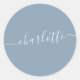 Elegante Dusty Blue Script Name Personalizado Classic Round Sticker