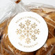 Um adesivo clássico redondo com floco de neve de ouro de Natal com nome. Fácil de mudar o texto.