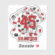 Este adesivo de futebol para rapazes ou raparigas apresenta a imagem de um bando de bolas de futebol vermelho, preto e branco de tamanho variado, sobre as quais se pode personalizar o nome do jogador, o número de camisa, o nome da equipe e o nome do mascote - por katz_d_zynes