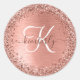 Personalize facilmente este design de adesivo chic redondo com tendência, com brilho bonito de ouro rosa em um fundo metálico escovado de rosa dourado.