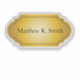 Um adesivo de nome profissional elegante com fonte clássica em um fundo de mistura dourada e uma forma histórica com borda. Útil para materiais de clientes empresariais ou qualquer aplicativo de estilo tradicional.