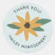 Este adesivo fofo apresenta uma pintura a guache de um girassol sobre um fundo azul claro. Uma mensagem de agradecimento personalizável emoldura a flor no topo e um nome personalizável emoldura o girassol na parte inferior. Estes adesivos de flores rústicas são um grande destaque com o conjunto de chá de panelas de casamento caprichoso Mason Jar e Flores Silvestres.