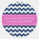 Nome personalizável da empresa e adesivos comerciais de informações de contato em cor-de-rosa-quente fuchsia brilhante, azul-marinho escuro e padrão de faixas zigzags retrorreflectoras brancas, perfeito para adicionar suas informações a sacos, parcelas ou envelopes. Entre em contato conosco para obter uma cor personalizada ou para combinar produtos de pequenas empresas.