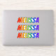 Este design vibrante, multicolorido e divertido adesivo apresenta o nome comum ou o nome próprio "MELISSA", com as letras do nome tendo um padrão colorido de gradiente inspirado no espectro do arco-íris colorido. Pode ser um presente divertido dar a alguém cujo nome é Melissa. [~Z0000361]