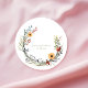 Adicione um toque novo e romântico aos seus favores de casamento ou artigos de papelaria com estes Bonito Wreath Names e Date Sticker. Este elegante adesivo redondo apresenta uma coroa delicadamente ilustrada de flores silvestres bonito em matizes vibrantes de verão vermelhas, amarelas e verdes com sotaques de folha que evocam um jardim exuberante em floração de cheio. Projetado para personalização, ele exibe lindamente os nomes da noiva e do noivo ao lado de sua data especial, fazer cada detalhe se sente verdadeiramente único. A estética suave e branca do adesivo e a bela design botânica trazem beleza natural e charme a qualquer tema de casamento, desde encontros russos ao ar livre até celebrações de quic jardim. Perfeito para selar convites, caixas de favor, sacos de presentes, ou mesmo como uma doce guarnição, é uma maneira simples de infundir sua celebração com cor alegre e sentimento sincero deixando uma impressão duradoura em cada convidado.