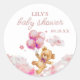 Adesivo redondo cor-de-rosa tema ursinho fofo "mal podemos esperar" para chá de bebê de menina. Criado por Thisisnotme©